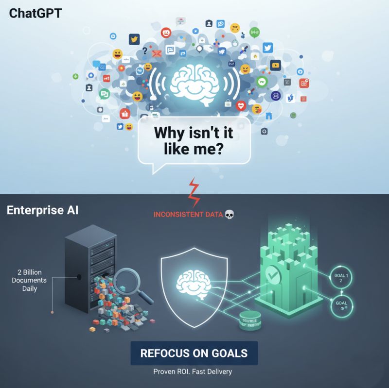A consumer model is trained on the entire internet. Your corporate AI is trained on your internal data—the data your people already struggle with.